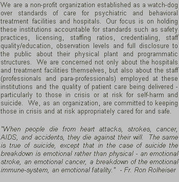 Our Mission is inpatient safety for those in crisis or at risk for self-harm and suicide.